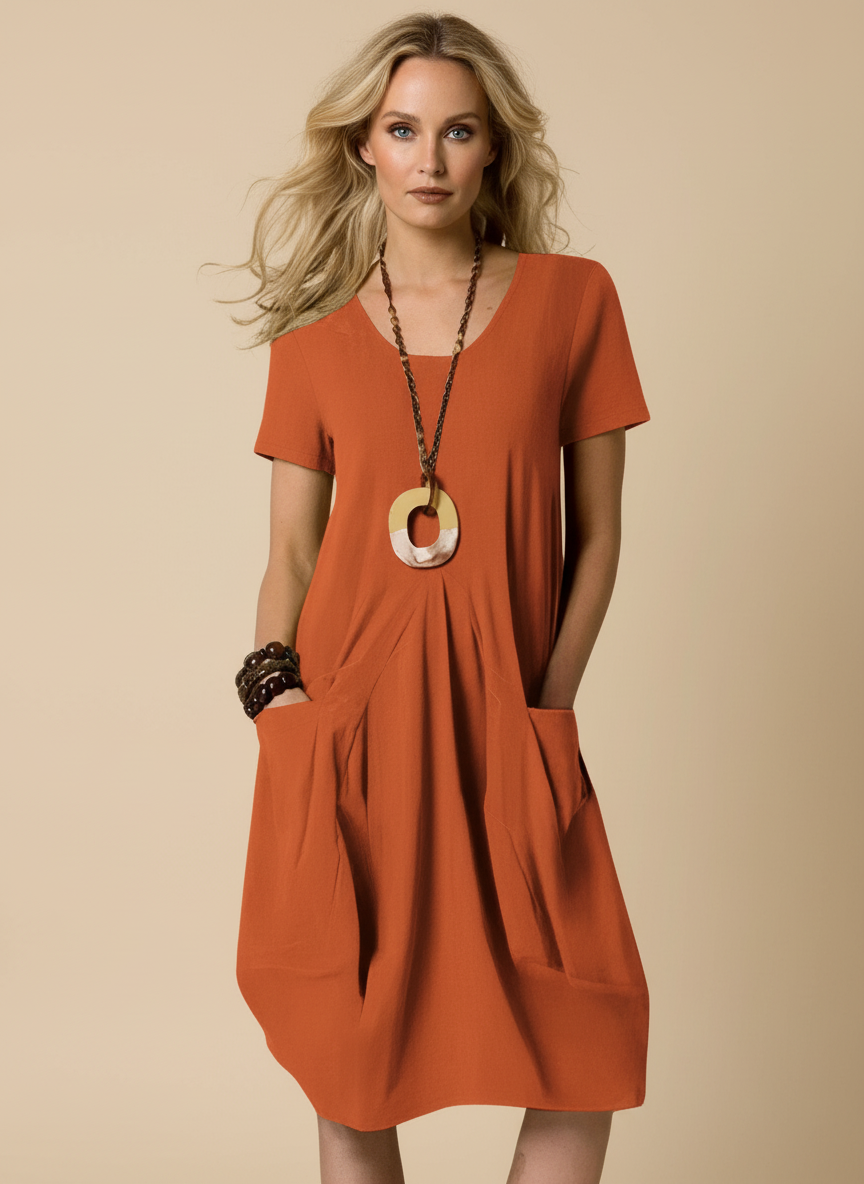 Casual Slouchy Pocket V Neck Linen Summer Midi Dress